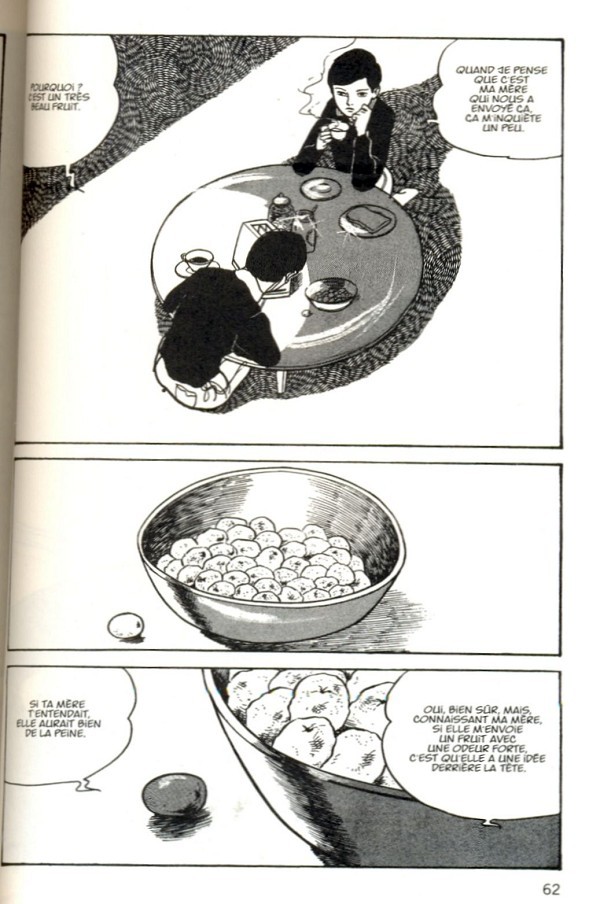 Présenté comme un chef d’œuvre de Kazuo Kamimura (Lady Snowblood et Le fleuve Shinano au dessin), Lorsque nous vivions ensemble narre, en trois impressionnants volumes, les amours tumultueuses de deux jeunes Japonais non-mariés dans les années soixante-dix. L’absence de reconnaissance officielle de leur couple, les aléas du quotidien, la passion exaltée qui les unit doublée d’une forte incompréhension mutuelle, les conduisent au fil des mois au bord d’un gouffre qui s’ouvre sous leur pas avec l’avortement de Kyôko. Les conséquences de cet acte grave et, dans son cas, dicté par une dépression qui la rend aussi amère qu’instable, sont développées dans ce deuxième volume, marqué par la souffrance, la culpabilité, le chagrin et la névrose. Très noir, ce volet plonge le lecteur dans les méandres de ressentis empreints de tristesse et d’ombre, conduisant les amants à des introspections difficiles, douloureuses, qui les forcent à s’interroger sur leurs faits et gestes, leurs manquements, leur passé. L’histoire familiale de l’héroïne est expliquée et permet de mieux comprendre son comportement, ses peurs ou ses attentes, tandis que Jirô doit faire face au jugement accusateurs des autres – le propriétaire de l’appartement qu’il loue, les amis, les médecins, le beau-père de sa compagne. Les longues et pénibles scènes dans l’établissement pour aliénés mentaux ajoutent encore à cette obscurité qui transperce les pages et que parvient à peine à atténuer le ton nostalgique, poétique et doux du récit. Le dessin, tout en simplicité et en élégance, dégage une puissance certaine, transcrivant les émotions – ou leur absence apparente -, plantant les personnages et les faisant évoluer au gré du pinceau tels des pantins écrasés par le poids de leur destin, jouant sur des décors rappelant des estampes. Les paysages, reposants et immobiles, contrastent fortement avec les cauchemars du couple et leurs fuites, ce qui renforce encore l’effet macabre du récit.