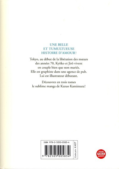 Résumé: Kyôko et Jirô vivent une relation amoureuse tumultueuse et passionnée. Ces deux êtres à fleur de peau entretiennent des rapports violents l’un envers l’autre. Alors lorsque la famille, les collègues ou les médecins s’immiscent dans leur vie privée, celle-ci redouble de tensions. Tout à la fois attachants, dépendants de leurs émotions et perdus par leurs sentiments, Kyôko et Jirô tentent de construire et préserver un quotidien pas toujours rose.