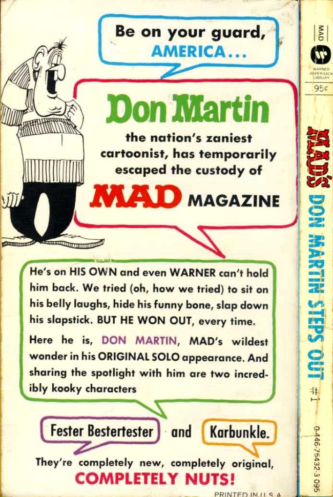 Les premiers gags de Don Martin. Le style est tel qu'il le demeurera pendant plus de 25 ans. L'effet comique est de situation, pas encore l'humour surréaliste qu'il va développer avec succès. Les néophytes attendront ses oeuvres futures (et surtout ses gags d'une page dans la revue Mad), les Madophiles se délecteront de ces premières pages, déjà si abouties.