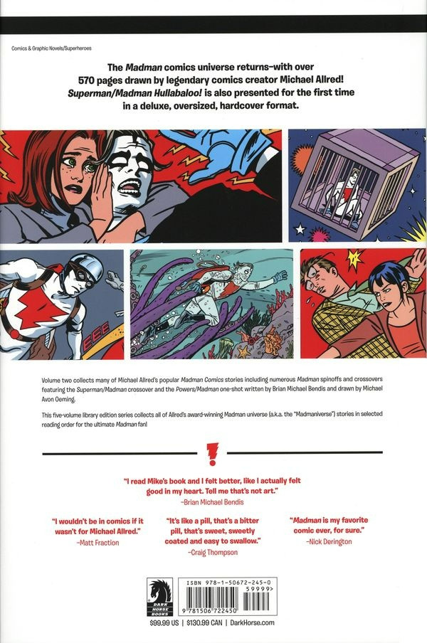 Info édition : Volume 2 - 1st printing. Collects Madman Comics (1994-2000 Dark Horse) #11-20, Superman/Madman: Hullabaloo (1997) #1-3, Nexus Meets Madman (1996), Madman: The Jam (1998) #1-2, Madman King Size Super Groovy Special (2003), WHO KILLED MADMAN? (POWERS crossover), Madman All New Giant Size Super Ginchy Special (2011 Image) , MADMAN Monster!, and "MADMAN Detour to Armenia".