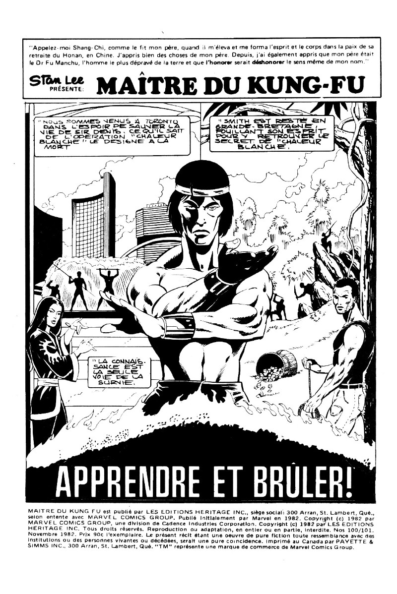 Les mains de Shang-Chi, maître du Kung-Fu (Éditions Héritage) -100101- Apprendre et brûler!