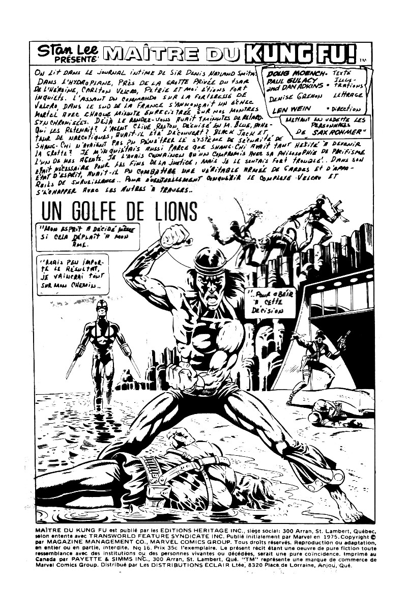 Les mains de Shang-Chi, maître du Kung-Fu (Éditions Héritage) -16- Un golfe de lions