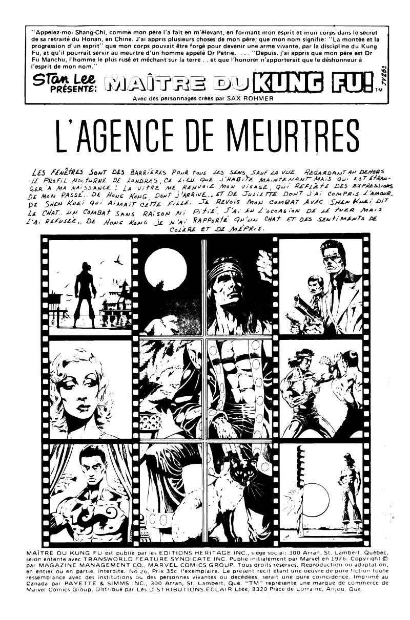 Les mains de Shang-Chi, maître du Kung-Fu (Éditions Héritage) -26- L'agence de meurtres