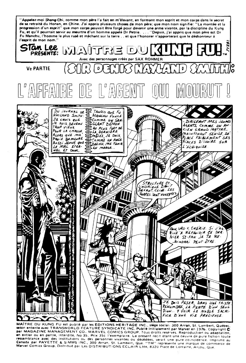 Les mains de Shang-Chi, maître du Kung-Fu (Éditions Héritage) -35- Ve partie (Sir Denis Nayland Smith): L'affaire de l'agent qui mourut!
