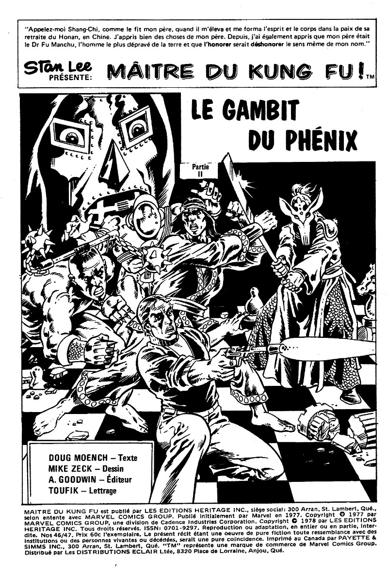 Les mains de Shang-Chi, maître du Kung-Fu (Éditions Héritage) -4647- Le Gambit du phénix