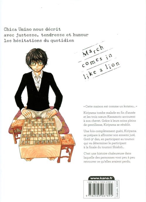 Kiriyama tombe malade en fin d’année et les trois soeurs Kawamoto accourent à son chevet. Grâce à leurs soins pleins de gentillesse, Kiriyama se rétablit. Une fois complètement guéri, Kiriyama se prépare à affronter son ennemi juré, Gotô 9e dan, en participant au tournoi qui va déterminer le participant à la finale du tournoi Shishiô…