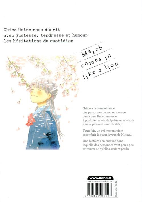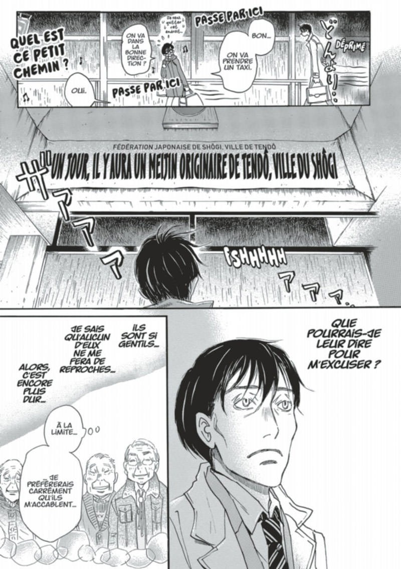 Résumé: Grâce à la bienveillance des personnes de son entourage, peu à peu, Rei commence à positiver sa vie de lycéen et sa vie de joueur professionnel de shôgi.