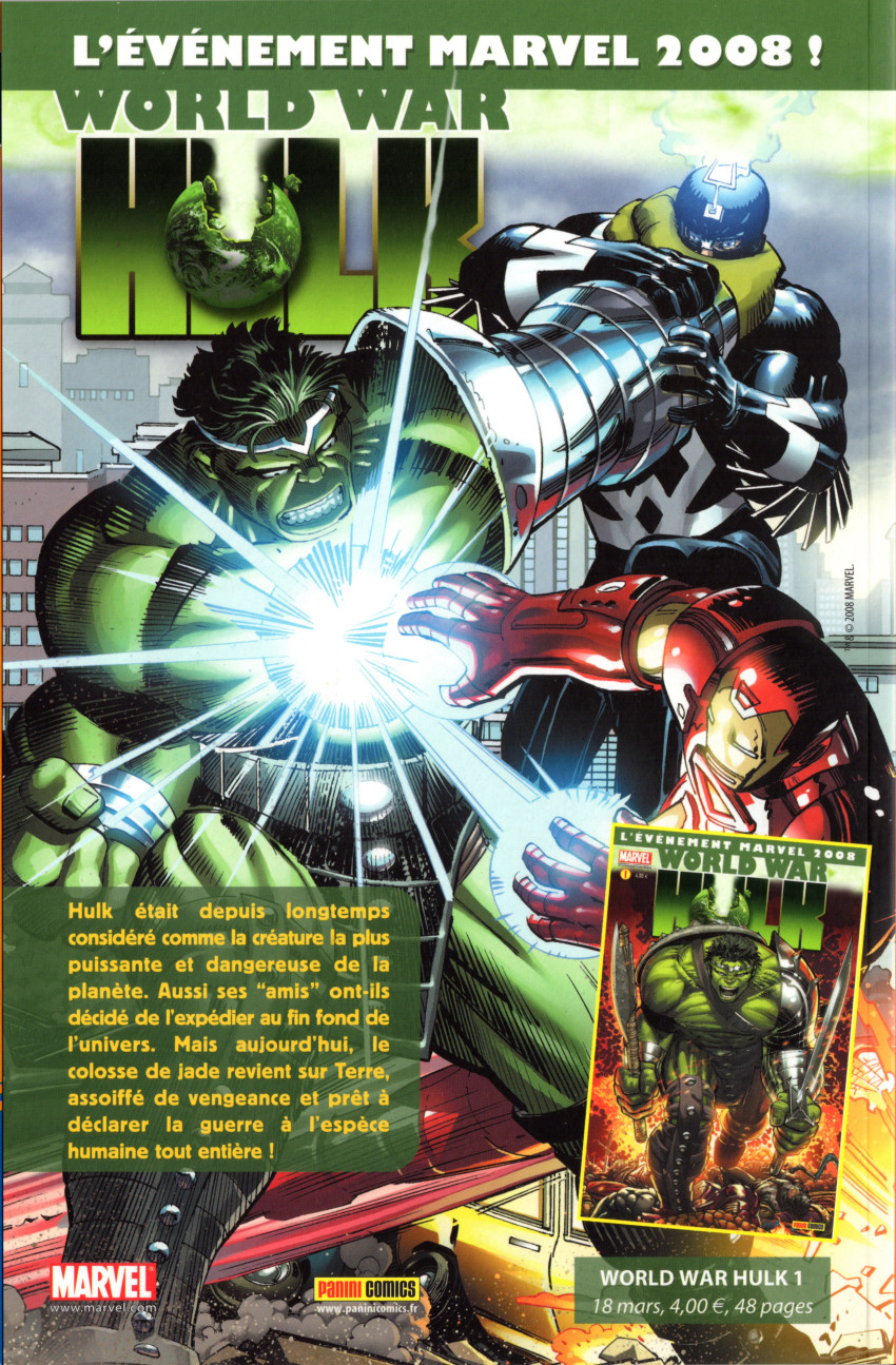 Résumé: On retrouve Ultron face aux Puissants Vengeurs, l'aventure d'Omega Flight s'achève et les Illuminati se mesurent à Marvel Boy. Mais le scoop du mois est sans nul doute l'arrivée du Hulk de Greg Pak et Gary Frank, à l'aube de l'événement de l'année, World War Hulk !