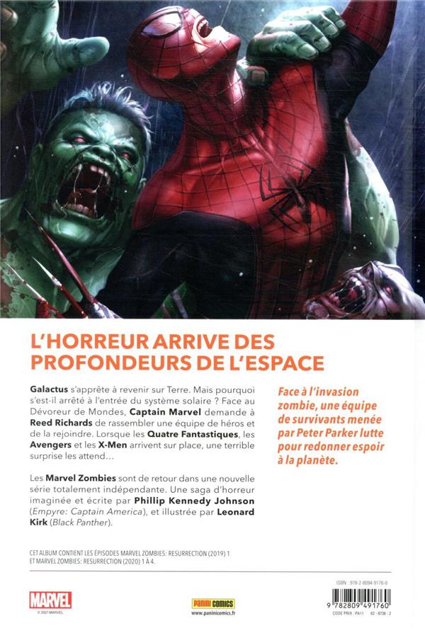 Info édition : Contient les épisodes US inédits : Marvel Zombies : Resurrection (2019), Marvel Zombies: Resurrection (2020) #1-4. Galerie de couvertures alternatives en fin d'album.
