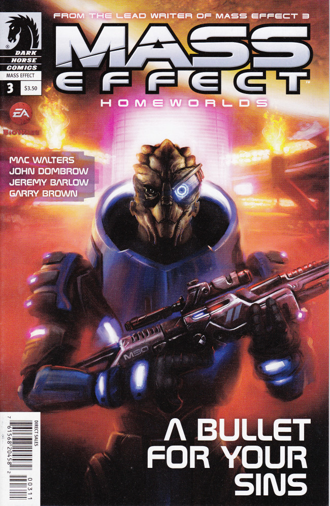 Résumé: (W) Mac Walters & Various (A) Garry Brown (CA) Michael Atiyeh, Anthony Palumbo Mass Effect: Homeworlds returns with a brand-new tale of turian Garrus Vakarian, from Garrus's Mass Effect 3 writer John Dombrow! Garrus has fought valiantly alongside Commander Shepard, but his time away from his home planet Palaven has seen crime and corruption take hold there, a contradiction that becomes clearer as he investigates the murder of a turian on Omega. Cutting to the heart of Homeworlds, Garrus must choose between fighting for the galaxy or protecting his home!