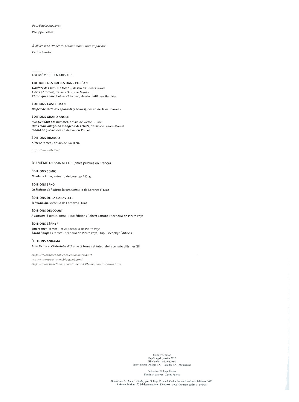 Avis sur la série - Ben voilà, je n'ai pas accroché à cette trilogie à rebours, pot pourri de tous les romans fantastiques du début du XIXe siècle au début du XXe siècle. C'est vraiment tiré par les cheveux (les personnages des romans sont en fait leurs écrivains, ce qui n'apporte rien à l'histoire ...), et tout ça est émaillé d'une relecture philosophique qui n'est qu'une paraphrase des romans utilisés, sans y ajouter quoique ce soit de nouveau. Il n'y a pas de plus-value dans cette BD. Bof.