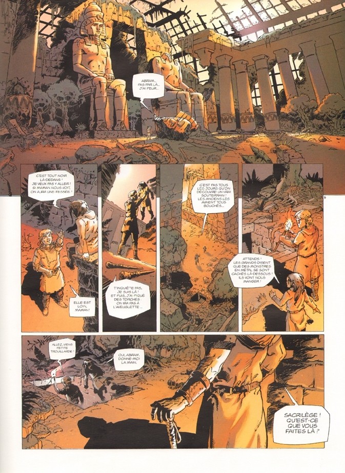 Résumé: Dans un futur post apocalyptique, Jalna vie avec ses enfants Abram, Saraï et son mari Jetro dans un des villages battis au sommet de ce qui fut dans un passé oublié les grattes-ciel d’une ville autrefois appelée New York. Tels des ilôts sur une mer de vide, ces villages forment des clans, reliés entre eux par des passerelles de bois. Mais depuis quelques temps, toutes les nuits, plusieurs se font attaquer par des pillards qui massacrent les populations. Malgré toutes leurs précautions, le village de Jalna aura peu de chance d’y réchapper, surtout si un traitre se cache parmi les rangs des villageois…