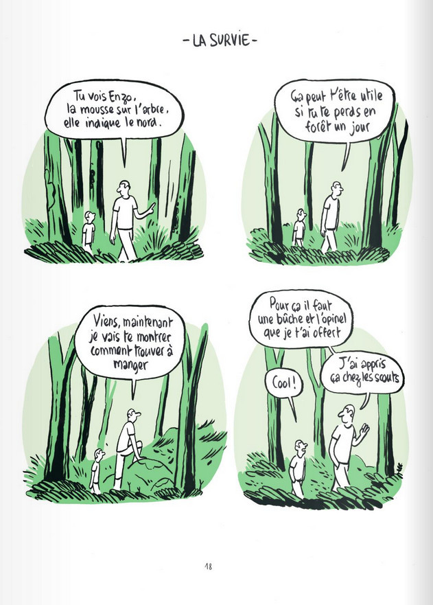 Énormément d’esprit, ce qu’il faut de décalage et un talent certain pour pointer les grandes absurdités du moment, l’auteur aligne, distord et égratigne le quotidien avec une férocité, non pas sanguinaire, mais plutôt étonnée, voire abasourdie. Il faut dire qu’entre le mystère éternel de la mécanique homme-femme et la pénétration toujours plus profondes des nouvelles technologies, il y a de quoi imaginer le pire. C’est exactement là que se concentre l’art du gaillard : des bambins discutent plan de vie, un quidam est harassé par un Mark Zuckerberg plus que collant et, certainement attendu par beaucoup de couples, la combinaison ultime pour réussir un cunnilingus satisfaisant est enfin révélée ! La diversité et l’originalité des situations sont permanentes. Ajoutez-y un sens aiguë de la chute et vous obtenez une lecture détente des plus abouties. Graphiquement, le tout est illustré à la manière des dessinateurs de presse. Le trait simple et synthétique va à l’essentiel. À peine posé, il provoque un instant de doute, irrémédiablement suivi par une avalanche de rire. La réaction est garantie.