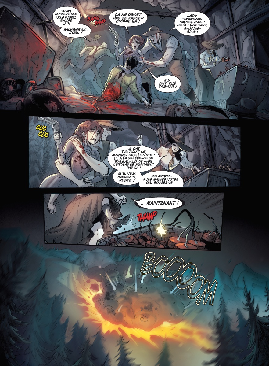 Les trois premières pages furent une déception. Qu’est-ce que ces monstruosités viennent faire dans mon bouquin steampunk ? Hélas, au fur et à mesure que j’avançais dans l’histoire, point de vaporistes à l’horizon, mais de l’horreur, de la cruauté à foison. Ce n’est qu’en arrivant dans les dernières pages que je commence à percuter l’histoire. Pas conquis par ce scénario, étant allergique aux histoires d’horreur, le monde en compte assez, il suffit de voir certains présidents pour se dire que la réalité dépasse souvent la fiction, je suis resté sur ma faim. Je n’ai rien à reprocher à la qualité de la plupart des dessins qui sont d’excellente facture. J’aurais préféré un papier satiné pour une mise en lumière plus éclatante des couleurs.
