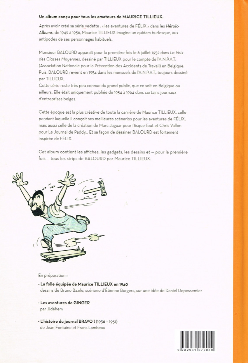 Outre ces nombreuses fictions, Tillieux avait régulièrement mis son talent au service de clients commerciaux ; surtout pour des illustrations et des publicités, mais aussi de la bande dessinée. Sur ce dernier point en particulier, il avait animé pendant près de dix ans, sur une commande de l’Association Nationale pour la Prévention des Accidents de Travail (A.N.P.A.T.), Balourd, des strips mettant en scène un ouvrier et ses compères dans le cadre de leurs métiers. Le but était de faire passer des messages en matière de sécurité sans être (trop) rébarbatif. Ce corpus de documents rarement vus, car seulement diffusés dans des publications professionnelles plus ou moins confidentielles, forme l’intégrale Balourd & C°. Ce fort volume rassemble, outre la totalité des gags, des précisions historiques et une foule de dessins inédits en album.