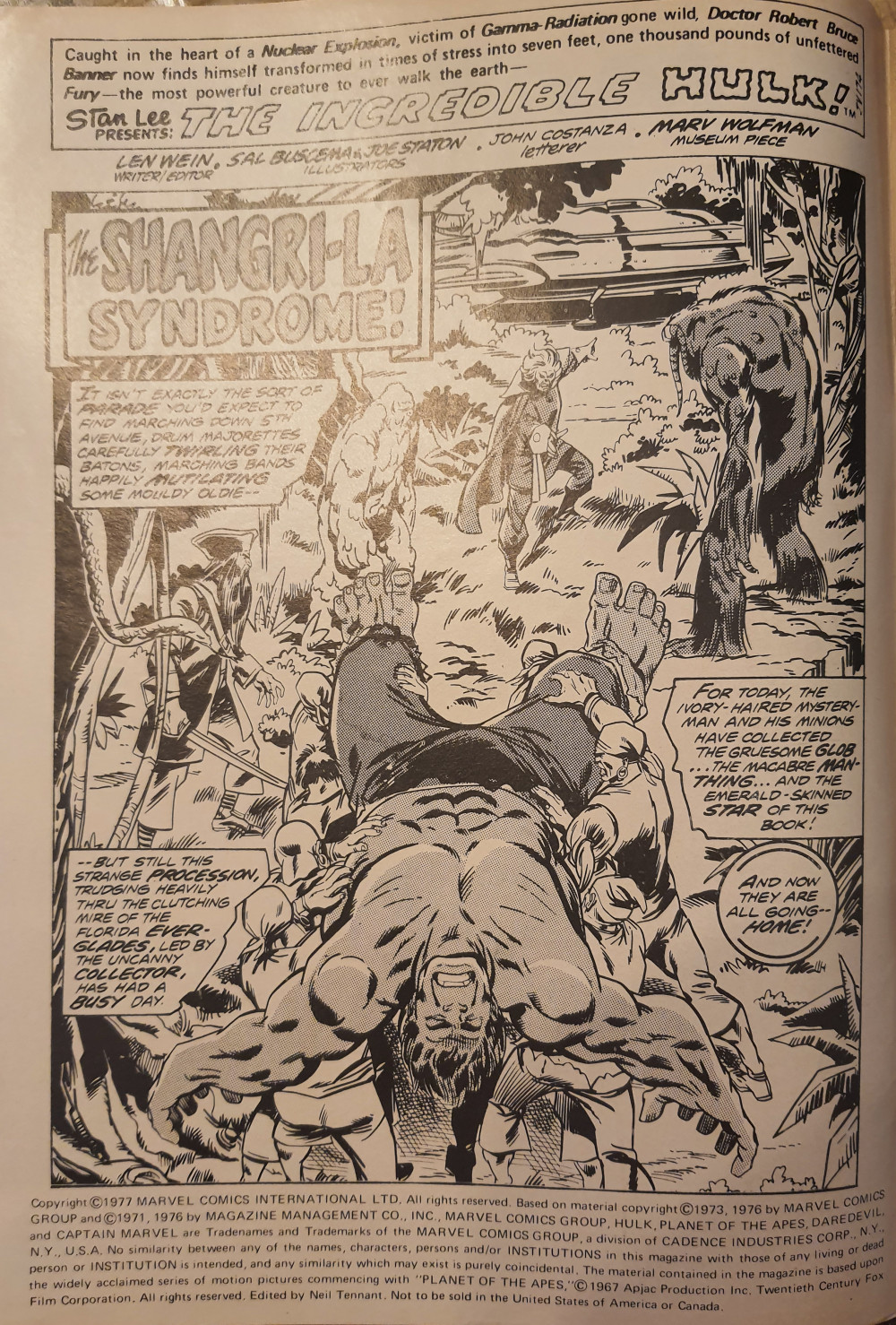 Page n1 a10 hulk thé shangri-la syndrome !Page n 12 a20 planet of the apes !conquest of blood !Page n22 a26 daredevil the triumph of el condor!Page n22 a35 captain marvel the beginning of the end !