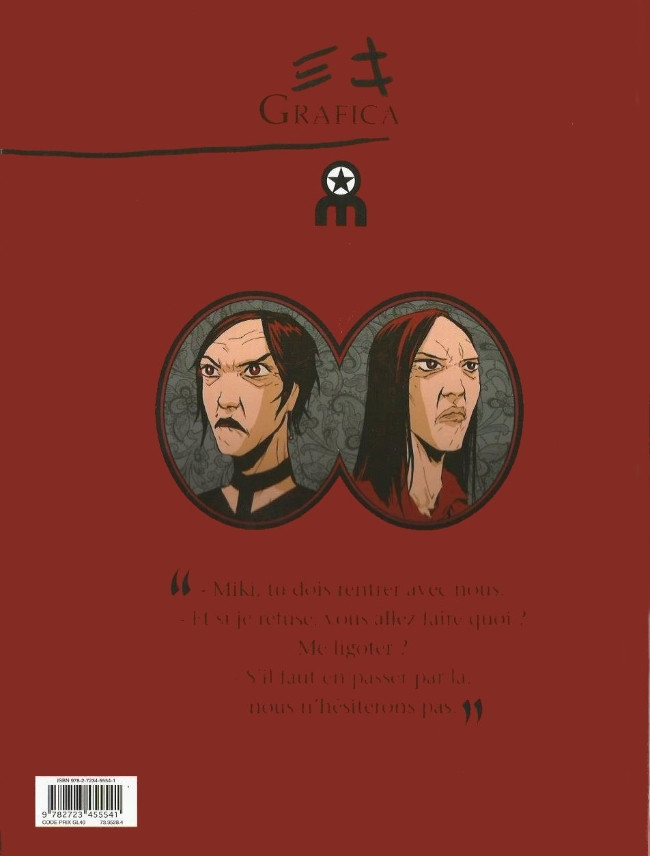Résumé: Miki ou l'incarnation de la malédiction d'une famille : la fin d'un diptyque au scénario original et au découpage rythmé.Dans un futur proche indéterminé, une gigantesque vague a déferlé sur la France et une bonne partie de l'Europe, laissant la population traumatisée et inondées les zones les plus basses de l'Hexagone. Miki, une jeune adolescente délurée, est victime de troubles hallucinatoires depuis sa plus tendre enfance. Couvée par des parents possessifs, elle subit un traitement médical qui la drogue plus qu'il ne la cure. Ses hallucinations avaient disparu grâce à ce traitement de choc, mais une visite dans la maison d'une mystérieuse tante les avait fait recommencer de plus belle : Miki s'imaginait rentrer dans des tableaux, combattre une redoutable créature et entendre parler un chien qui lui donnait des conseils très étranges. Mais ces phénomènes étaient-ils bien des hallucinations ?Ce tome 2 lève enfin le mystère, que nous nous garderons bien de faire éclater ici Disons simplement que ses visions sont loin d'être dûes à une maladie, que le bulldog qu'entend Miki est loin d'être bienveillant, que sa famille est loin d'être aussi banale qu'elle le croyait Un diptyque à cent à l'heure et très étonnant, où le scénario de Serge Meirinho mélange l'anticipation et le fantastique, et où le dessin d'Anton impressionne par sa capacité à alterner les scènes du quotidien de Miki et celles d'hallucinations où les tableaux s'animent et les démons entrent en scène Un va-et-vient narratif et graphique d'une grande originalité qui gagne à être découvert sans attendre !