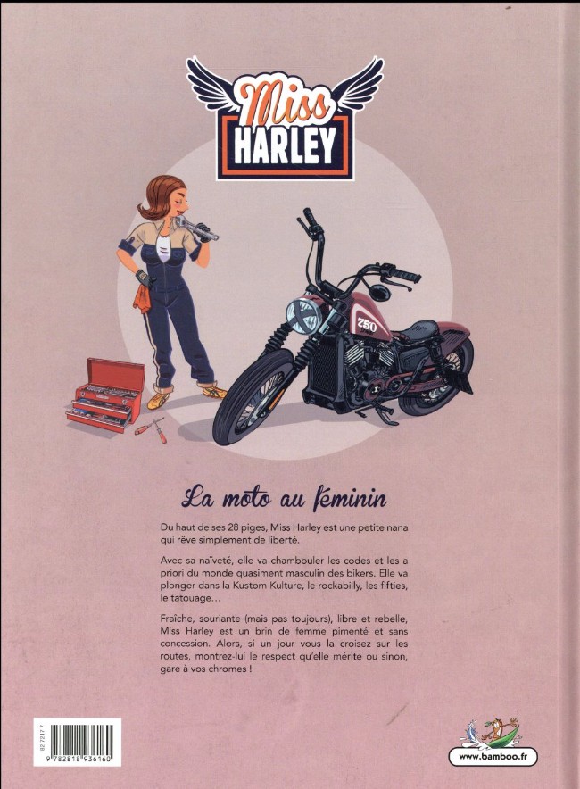 Miss se rêve en Harley, mais n’abandonne pas pour autant sa féminité… Il s’en suit une série de gags en une planche sur le dur apprentissage de bikeuse : délices des révisions, railleries de ses condisciples mâles, problèmes de carburation et choix du tatouage adapté. L’ensemble prêtera plus souvent à sourire qu’à rire et provoquera – vraisemblablement - des poussées d’urticaire à celles qui ignorent les délices du second degré.