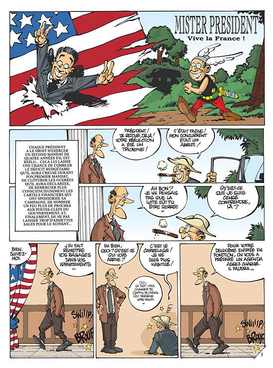 l revient, et il est content. Normal, il a été réélu pour quatre ans chef suprême de la plus grande puissance mondiale et occupant du Bureau Ovale de la Maison Blanche (pour des précisions sur ces lieux aux noms si poétiques, reportez-vous au premier tome). Pour son second mandat, Mister President sera sur tous les fronts. A l'international, il lui faudra se rabibocher avec les mangeurs de grenouilles, rapatrier la dépouille de Yasser Arafat en Palestine et aider les cardinaux à choisir un nouveau pape. Sur le plan national, il devra lutter contre l'obésité galopante avec des solutions adaptées : parachuter tous les gros en Laponie, par exemple. « Là-bas, avec des parkas, ils passeront inaperçus... », estime le dirigeant du Monde Libre™. Et puis il y a quelques affaires personnelles à finir de régler, notamment avec la stagiaire, Miss Leschwinsky. Mais de toute façon, quand on porte des santiags en peau de banane, c'est qu'on ne craint pas les dérapages !
