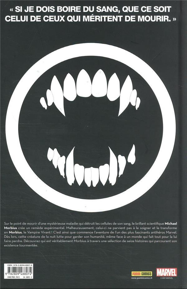 Info édition : Contient les épisodes US : Amazing Spider-Man (1963) #100-102, 622 (I), 679.1, 699.1, Vampire Tales (1973) #1-2 (I), Marvel Two-in-One (1974) #15, Spectacular Spider-Man (1976) #38, Peter Parker : Spider-Man (1996) #79-80, Strange Tales : Dark Corners (1998) (II), Legion of Monsters : Morbius (2007) #1, Spider-Man Family (2007) #5 (I), Legion of Monsters (2011) #1