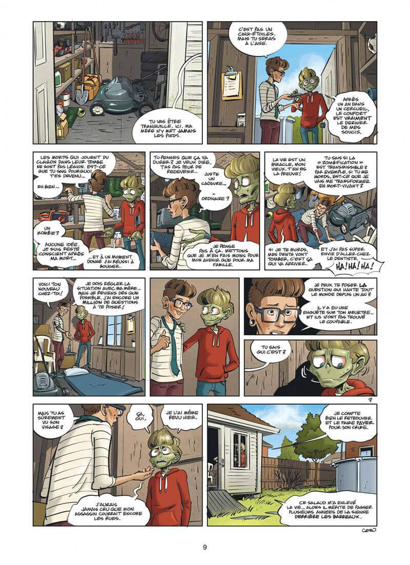 Résumé: Réfugié chez son pote Nico, Yan, le zombie, se rend compte qu'il ne peut pas mener son enquête avec sa tête de déterré. Il part donc chez Alice, son amie spécialiste en maquillage, pour qu'elle lui rende un visage un peu plus humain. Mais en chemin, il se fait alpaguer par deux mecs qui vont à une fête costumée. Sur place, il retrouve le jeune client du dealer qui l'a poignardé, mais aussi sa soeur qui a visiblement été droguée par un jeune aux intentions malveillantes. Il la suit et provoque un accident de la circulation pour les tirer des griffes de ce prédateur. Poursuivi par la police, Yan n'est pas près de goûter au repos éternel...