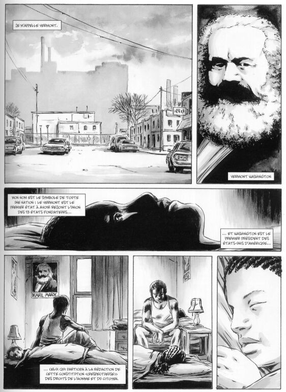 ermont Washington : un prénom correspondant au premier territoire qui a rejoint les treize États fondateurs des États Unis d'Amérique ; un nom que portait le premier président de l’Union, co-participant à la rédaction de la constitution américaine. Malheureusement pour lui, sa vie est aux antipodes des idéaux attachés à ces symboles. Victime au quotidien du racisme et de la ségrégation, il a rejoint les Blacks Panthers pour faire avancer les droits des Noirs.