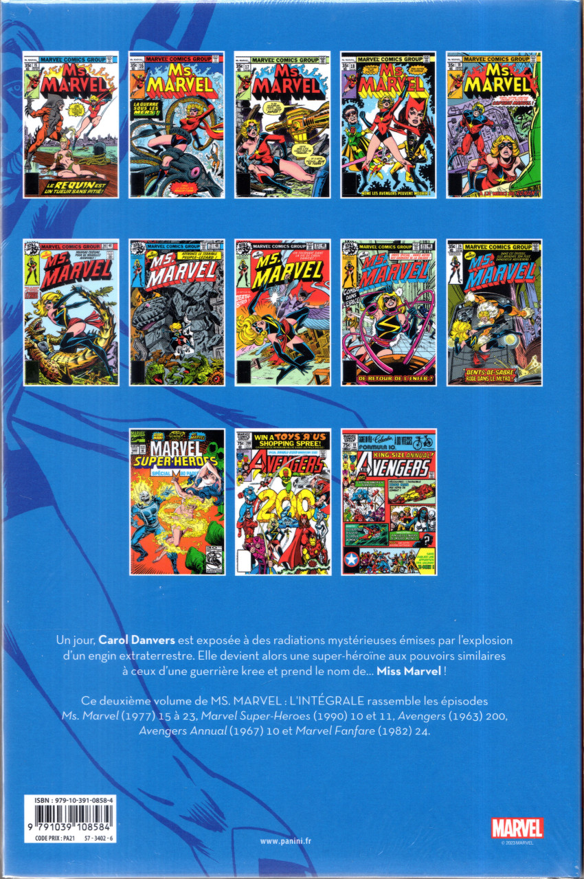 Info édition : Contient : Ms. Marvel (1977) 15-23, Marvel Super-Heroes (1990) 10-11, Avengers (1963) 200 et Annual 10 et Marvel Fanfare (1982) 24, précédemment publiés dans AVENGERS : L'INTEGRALE 1980, 1981-82, Miss Marvel 5-7 et inédits
