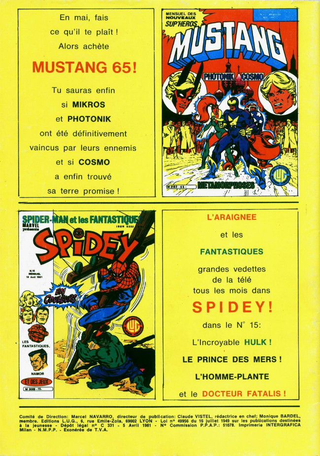Allez, on arrête avec les superlatifs qui planent dans le stratosphérique. Va falloir redevenir sérieux. Mustang, second du nom, n'est pas LE magasine de super héros ( Allez plutôt du côté STRANGE pour ça) mais la madeleine de Proust ultime d'un bonhomme de cinquante ans comme bibi. Ici nos sup' héros microscopiques (qui ne le sont plus et qui ont pleins d'autres pouvoirs qu'on comprend pas tout) les perdent....Et nous voila dans une histoire digne des pulps sur la guerre froide avec tous les poncifs d'usage et rigolo. Cosmo, lui, tombe dans une planète sauvage ou il y a des plantes carnivores mais de pas d'animaux donc de viandes, donc de barbaques...Bon ça tient pas non plus mais c'est fendard quand même. Parce que c'est plein d'actions, de rebondissements (bon foutraques les rebondissements). Toujours du n'importe quoi mais moi j'aime. Et puis il y a Photonik plus sérieux, plus sincère et tout aussi plus en actions. Les dessins de Tota, trop bien, sont moins bon que ceux de Mitton, géniaux? Tout ça est affaire de goût…. Mustang reste une immense madeleine boursouflée de bon chocolat et de chantilly onctueuse. C'est gourmand dans les twists, l'action et l'histoire qui file trop vite? Trop peut être? C'est sur! Mais quand on aime on grossit et pis tant pis.BDGest 2014 - Tous droits réservés