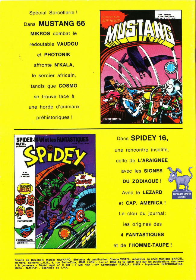 Oui je sais. 4 étoiles, c'est exagérer pour un vieux magasine avec des vieux sup 'héros pas connu et pas même adaptés par des films pop corn à l'américaine. Tant pis. Parce que, toujours, les séries sont foutraques, déjantées parfois aussi hallucinées. C'est pété de "deus ex machina", de rythme qui induit l'illogisme d'une narration mal construite. Est ce graçe ou à cause de Jean Yves Mitton et Marcel Navarro ? Oh oui! Ils sont partout les loustics: Mikros, Cosmo au scénario, aux dessins (j'adore!) et même en tant que personnages!!!! Car ils n'hésitent pas à partir en sucette de partout et c'est réjouissant toujours autant ! Même du côté de Photonik, création de Cirus Tota, Jean-Yves donne la main. On le ressent. Les blagues potaches et le débridé ce n'est pas dans l'ADN de Tota. Et dans ce numéro, c'est aussi la fin de la saga du Minotaure....Et c'est plutôt bien fini. On sent bien que nos auteurs lyonnais s'amusent comme des petits fous à faire du n'importe quoi tout en assumant le faire. Et ça tombe bien, on s'amuse autant qu'eux.BDGest 2014 - Tous droits réservés