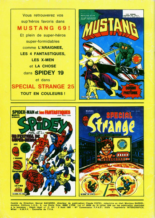 "Les As du fantastique", rooooooooh ....quand même..... Pour Mikros, un nouveau méchant et une nouvelle méchante apparaissent et nos héros se trouvent pile-poil sur leurs chemins! C'est-y pas de la grosse chance tout de même? Entre un voyage en micro classe, une bataille sur une aile d'avion et un atterrissage peinard, le scénario n'est qu'un prétexte pour de la baston et nous faire marrer gras. Bon faut aimer le foutage de gueule. Moi perso, j'adore! Et pour Cosmo, c'est tout pareil. Et que ça file, ça file et ne cesse de filer vite. Du côté de la finesse, on repassera, c'est sur. Mais est-ce bien grave tout ça? Jean-Yves Mitton nous régale toujours autant d'un beau dessin et de quadrichromie excellente. C'est sur on peut pas être au four et au moulin: Ecrire deux bonnes histoires et faire de beaux dessins pour deux séries ( 40 planches tout de même tous les mois!) Je reste fasciné par cette quantité de travail effectuée et ceci depuis plusieurs mois déjà par un seul artiste. Reste Photonik. Tota est plus fin, moins gras. Mais désormais, plus commun pour le coup. Son dessin est très beau (histoire de gout bien sur) et l'aventure nous emporte en Afrique. Malgré tout, elle est toujours aussi chouette, cette machine à remonter le temps, ce mensuel au papier jaunie, ces sup 'héros qui ont pourtant tant vieilli mais pas si mal que ça, malgré tout.....BDGest 2014 - Tous droits réservés