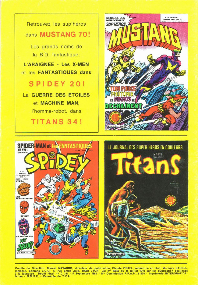 Chez Mikros et ses copains, il y a du ramdam en mode jemenbatlec' question scénario. On s'en fiche. C'es rigolo. Et les dessins font très eighties. Une vrai DeLorean ce comics là. Chez Photonik, ça le fait tout pareil et l'aventure africaine se clôture dans un festival de baffes, de torgnoles et de mornifles (mais aussi de poncifs éculés sur les africains en 80) . Tota dessine trop bien. Comme je dis, une vrai DeLorean pour se rappeler d'où l'on vient questions idéologie des peuples pour savoir ou l'on va... Chez Cosmo, c'est fini. Et Jean Yves Mitton tente la clôture finale. Cosmo et ses acolytes vont enfin trouver la planète paradisiaque avec un Bipbip qui va même trouver l'amour. Qui l'aurait cru? L'auteur tente de tout rentrer avec chausse pied sur 20 planches en voulant, en plus, développer une narration à part. Dur dur d'être un auteur. Malgré tout le grand guignolesque des situations (totalement nanardesque, c'est entendu) est assez hilarant. Reste que : 1- les dessins sont classes 2-le nanard c'est fendart 3- Cosmo, c'est clos comme il faut Mais ça sent quand même le sapin cette affaire de Mustang làBDGest 2014 - Tous droits réservés