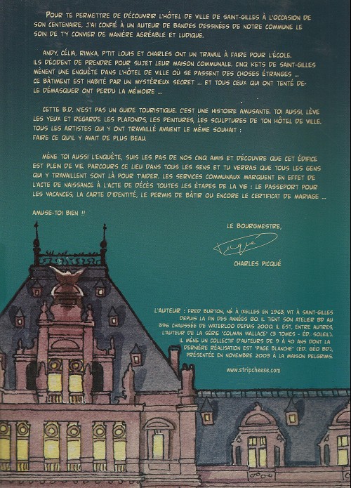 Info édition : BD éditée à 3800 exemplaires N/B à l'occasion de la fête des enfants pour le centenaire de l'Hôtel de ville de St-Gilles, Bruxelles, Belgique
