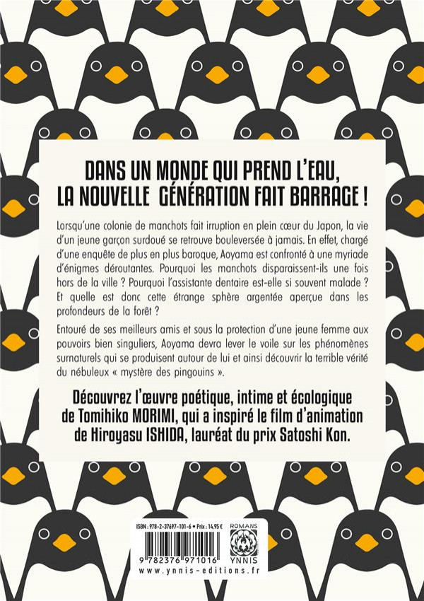 Résumé: Suivant l'apparition mystérieuse de manchots au coeur d'une ville japonaise, la vie d'un très jeune génie bascule à tout jamais. Son quotidien devient de plus en plus étrange : il rencontre une jeune femme qui a le pouvoir de transformer des objets inanimés en êtres vivants et tombe par hasard sur une grande sphère énigmatique dans une clairière isolée, que les manchots semblent détester. Ses recherches paraissent mener à une conclusion : l'apocalypse est proche, et la seule solution semble être de constituer une armée de manchots... Derrière un scénario farfelu se cache une oeuvre pleine de poésie, une dramédie intime et épique, philosophique et intrigante et un voyage initiatique haut en couleur au cours duquel les jeunes héros apprendront à grandir.