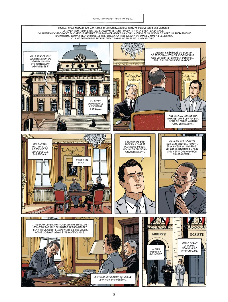 Résumé: Le polar historique qui dévoile les sombres années de la République française Paris, fin 1937. Albert Devigny et la plupart des activistes de son organisation d'extrême droite sont maintenant sous les verrous. Seul manque à l'appel André Paillol, alias le « Tueur dévot », qui a disparu de la circulation après avoir forcé un barrage de gendarmerie. Alors que l'un de ses adjoints est sur les traces du criminel, le commissaire Franck Peretti mène parallèlement une enquête où l'acronyme SAIC revient régulièrement. Officiellement un centre voué à la documentation industrielle et commerciale ou à l'étude des mouvements politiques, cette « Société anonyme de l'industrie et du commerce » serait en réalité une entreprise fantôme... Sous le pinceau affûté de Pierre Wachs, Philippe Richelle nous plonge dans une nouvelle enquête du commissaire Peretti dans les dessous troubles de la IIIe République, nous montrant comment l'idéologie fasciste gangrénait l'ensemble de la société à la fin des années 1930.