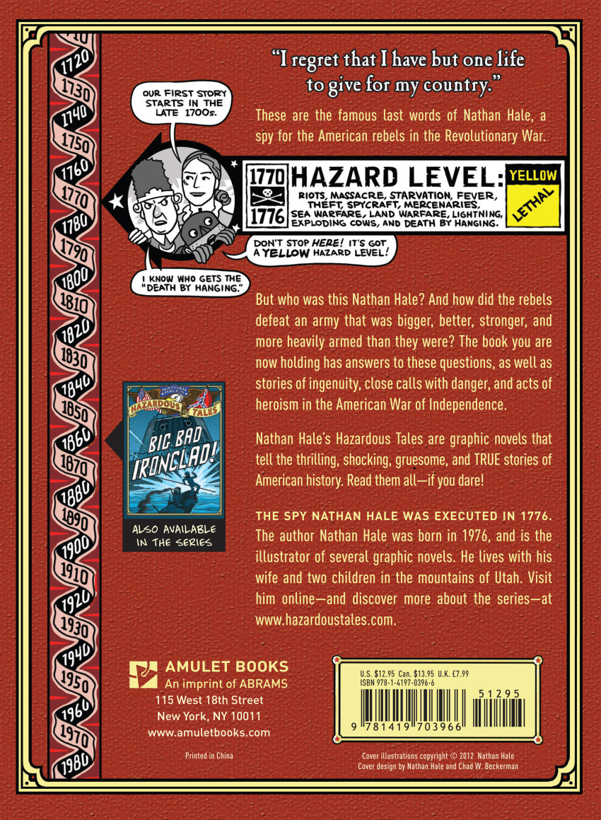 One Dead Spy tackles the story of Hale himself, who was an officer and spy for the American rebels during the Revolutionary War. Author Hale highlights the unusual, gruesome, and just plain unbelievable truth of historical Nathan Hale—from his early unlucky days at Yale to his later unlucky days as an officer—and America during the Revolutionary War.