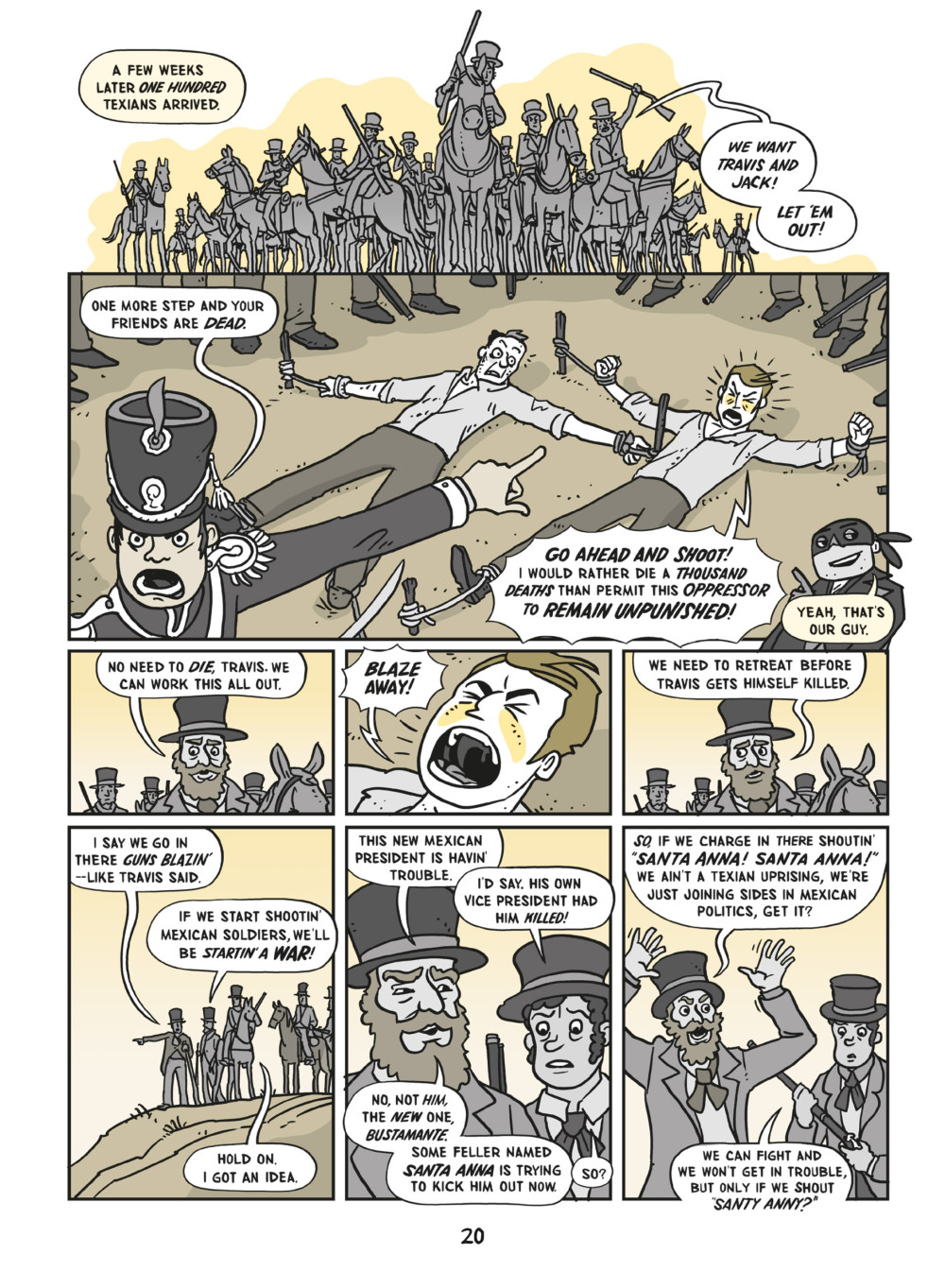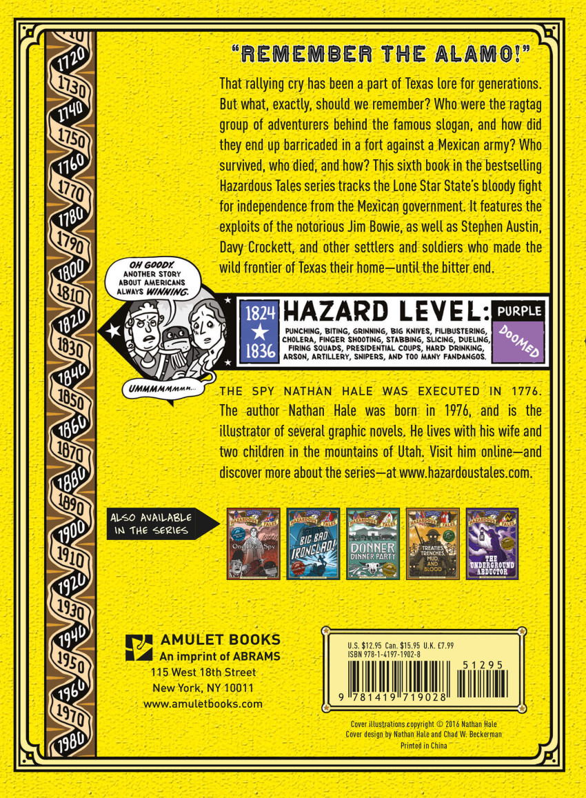 Résumé: “Remember the Alamo!” That rallying cry has been a part of Texas lore for generations. But who were the ragtag group of adventurers behind the famous slogan, and how did they end up barricaded in a fort against a Mexican army? Who survived, who died, and how? This sixth book in the bestselling Hazardous Tales series tracks the Lone Star State’s bloody fight for independence from the Mexican government. It features the exploits of the notorious Jim Bowie, as well as Stephen Austin, Davy Crockett, and other settlers and soldiers who made the wild frontier of Texas their home—all told with the inimitable style and humor for which Nathan Hale is known.