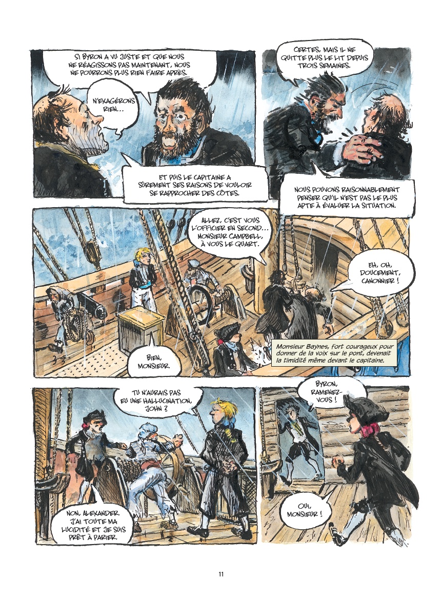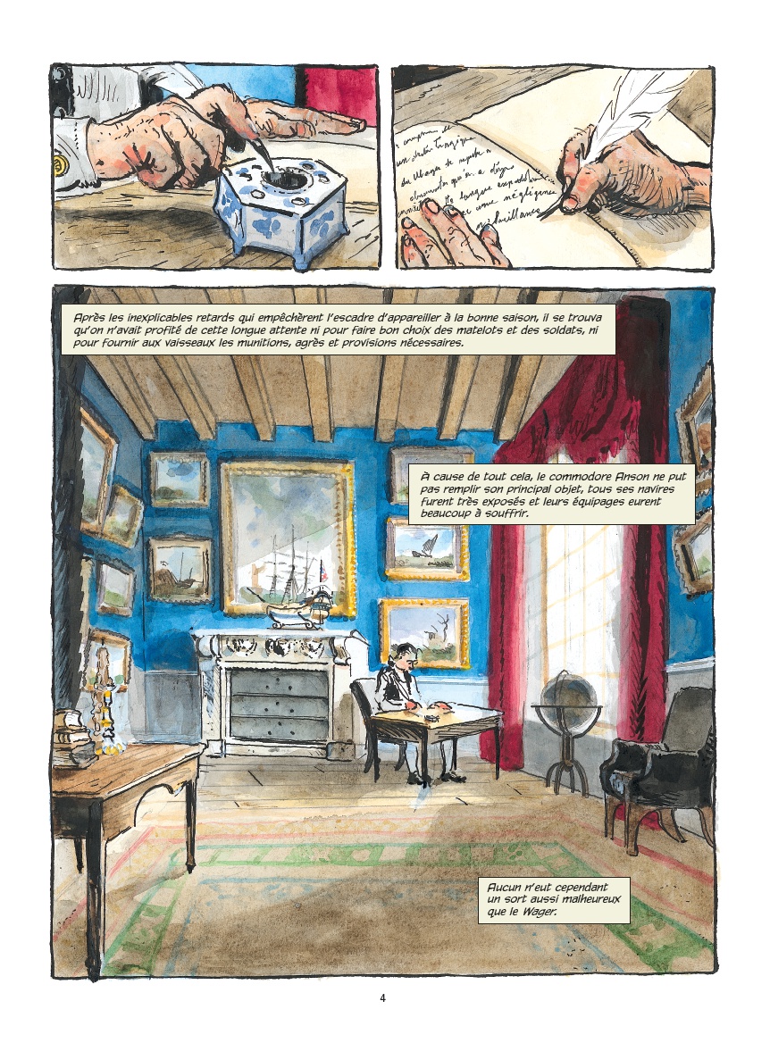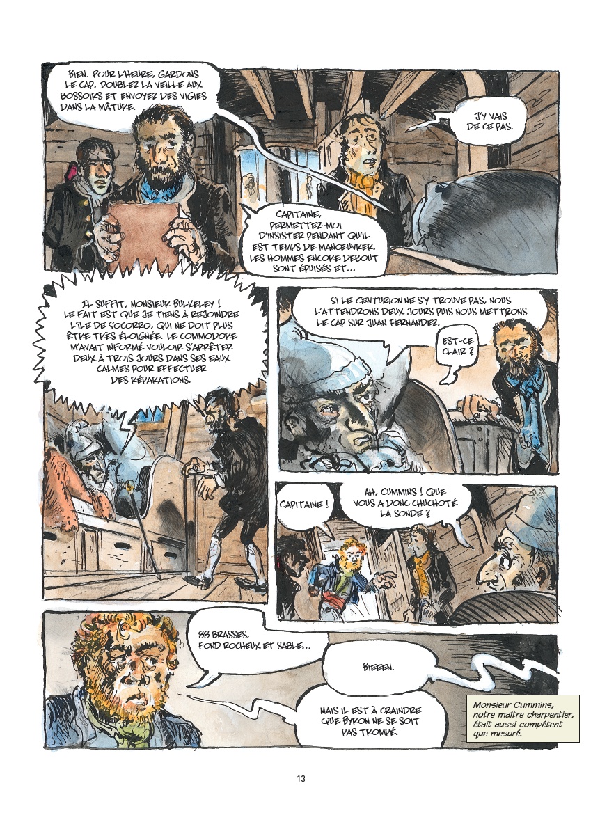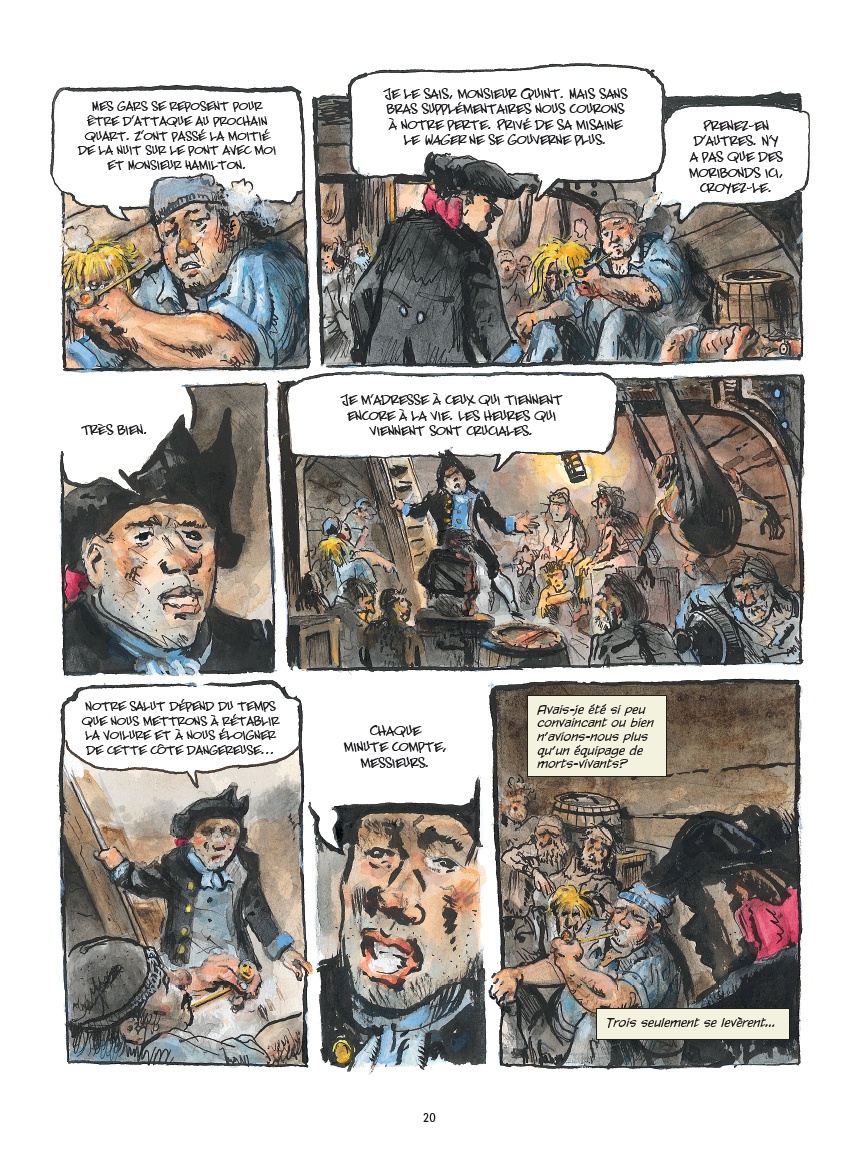 Après avoir raconté l’histoire de l’escadre du Commodore Anson, les auteurs se penchent sur le destin tragique d’un des navires, le Wager, d’après les souvenirs de John Byron, aspirant à bord du bateau et l’un des rares survivants. Un grand récit historique au souffle épique.