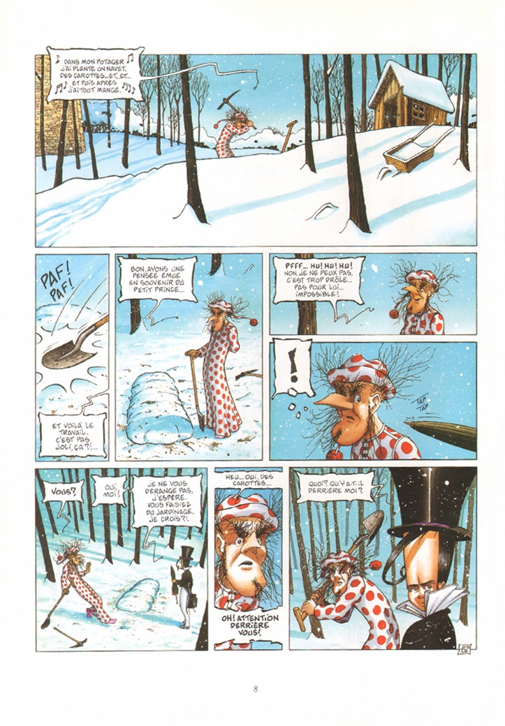 Cerise sur la gâteau, Turf nous en met une nouvelle fois plein les yeux avec un dessin encore plus abouti que dans les albums précédents (mais comment cela est-il possible !?!? C'était déjà parfait avant !!! Il est vraiment fort ce Turf ...). Aussi bien dans l'esthétisme du trait (que c'est beau !!!), que dans la variété des dessins (plusieurs styles graphiques au menu) ou l'originalité de la mise en page (certaines cases sont tellement folles que ça fait même penser à du Andreas ... excusez du peu !!!), on ne peut que s'incliner devant le génie graphique de l'auteur.
