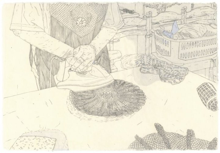Nénette repasse et explique son travail et sa vie pendant que Louise l'écoute et la dessine. Une exposition a été présentée à Pollen fin 2019 où Louise Collet a montré les dessins qu'elle a réalisés avec Nénette. Loin d'un travail documentaire, l'artiste s'attache à faire le portrait en creux de la vieille dame. Subtil, délicat, précieux, ce travail a été remanié pour donner un livre accompagné d'un CD qui fait entendre la voix de Nénette.