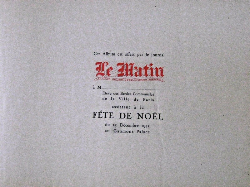 - Info édition : Album offert par le journal Le matin aux élèves de l'école communale de Paris lors de la fête de Noël 1943 au Gaumont-Palace