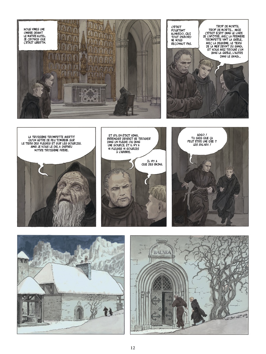 Événement ! Milo Manara clôt son l'adaptation en deux tomes du chef d'oeuvre d'Umberto Eco, vendu à plusieurs millions d'exemplaires et traduit en 43 langues. Après Jean-Jacques Annaud au cinéma (1986), et avant une comédie musicale et un opéra, c'est la bande dessinée qui propose, via l'un de ses artistes les plus prestigieux, une relecture du célébrissime polar philosophique médiéval. À la demande des héritiers Eco, Manara a eu carte blanche pour donner sa vision de l'oeuvre, et le succès a été au rendez-vous : plus de 100 000 ex. vendus en France pour le tome 1. En voici la conclusion, enrichie d'une préface de Jean-Jacques Annaud lui-même.