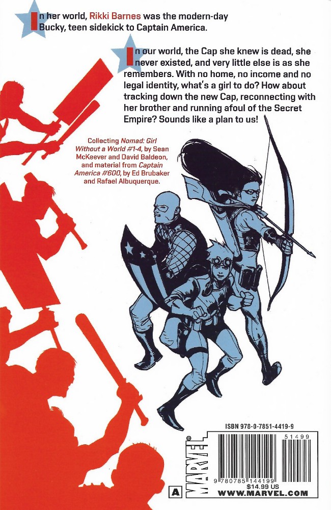 Résumé: In her world, RIKKI BARNES was the modern-day BUCKY, teen sidekick to CAPTAIN AMERICA. In this world, the Cap she knew is dead, she never existed, and very little else is as she remembers. With no home, no income and no legal identity, what's a girl to do? How about tracking down the new Cap, reconnecting with her brother, and running afoul of the SECRET EMPIRE? Sounds like a plan to us!