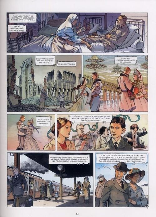 Anastasia est sauve, que faire d'elle ? Après un premier tome centré sur les dernières heures des Romanov, Patrice Ordas et Patrick Cothias tentent de répondre à cette question dans Les Cendres de Koptiaki. Malheureusement, le résultat n'est guère convaincant. Attente, fuite ou non, coup de théâtre : la narration tergiverse, hésite et se résume finalement à un long exercice de remplissage faute de mieux, en attendant une conclusion à venir dans le troisième et dernier volume de la série. Certains épisodes de l'album sont, certes, bien pensés (l'enquête du juge Sokolov, par exemple), mais d'autres semblent juste être là pour fournir un peu d'épaisseur à l'ouvrage (l'apparition et la rapide disparition du photographe William Jessup). Pire encore, le traitement psychologique des personnages – un des points forts de Villa Ipatiev – est cette fois-ci très superficiel, à la limite de la caricature. D'une façon générale, dès que le scénario s'éloigne des faits historiques, les auteurs semblent désemparés et ne proposent que des solutions peu probantes.