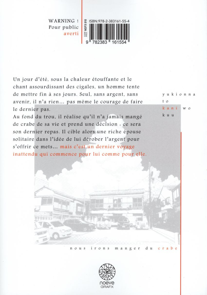 Résumé: Un jour d'été, sous la chaleur étouffante et le chant assourdissant des cigales, un homme tente de mettre fin à ses jours. Seul, sans emploi, sans argent, il n'a rien ... pas même le courage de faire le dernier pas. Au fond du trou, il réalise qu'il n'a jamais mangé de crabe de sa vie et prend une décision: ce sera son dernier repas. Il cible a lors une riche épouse solitaire dans l'idée de lui dérober l'argent pour s'offrir ce mets ... mais c'est un dernier voyage inattendu qui commence pour lui comme pour elle.