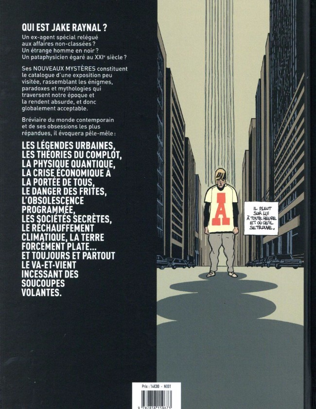 Résumé: Qui est Jake Raynal ? Un ex-agent spécial relégué aux affaires non classées? Un étrange homme en noir ? Un pataphysicien égaré au XXXème siècle ? Ses nouveaux mystères constituent le catalogue d'une exposition peu visitée, rassemblant les énigmes, paradoxes et mythologies qui traversent notre époque et la rendent absurde, et donc globalement acceptable.