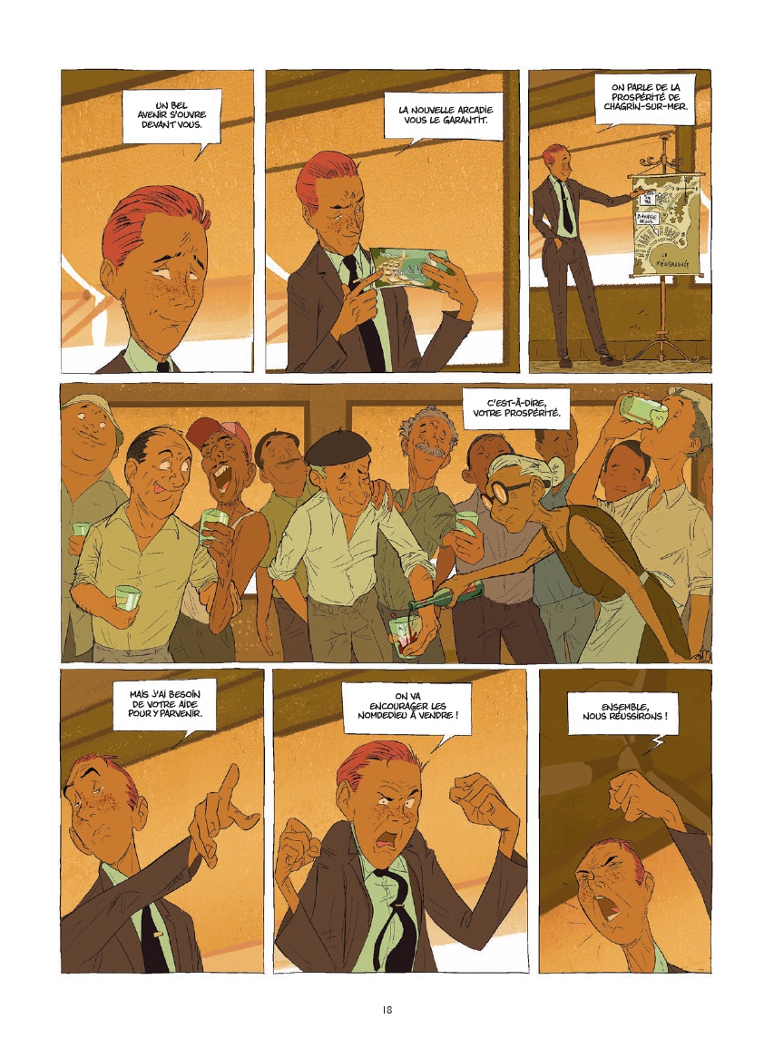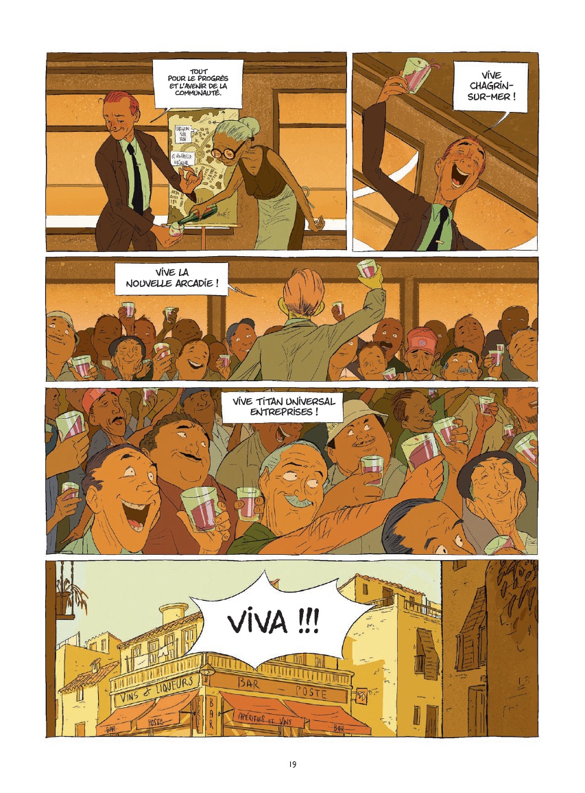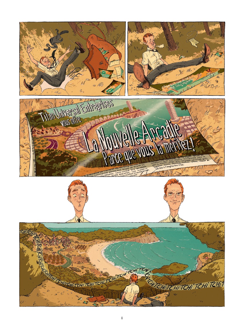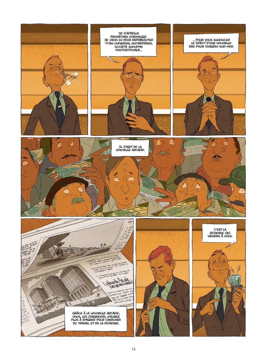 Résumé: Fin des années 60. Prométhée Foiemangé, jeune employé d’une puissante multinationale, est envoyé dans un village méditerranéen pour acquérir les terrains afin d’y bâtir un ambitieux complexe touristique : La Nouvelle Arcadie.