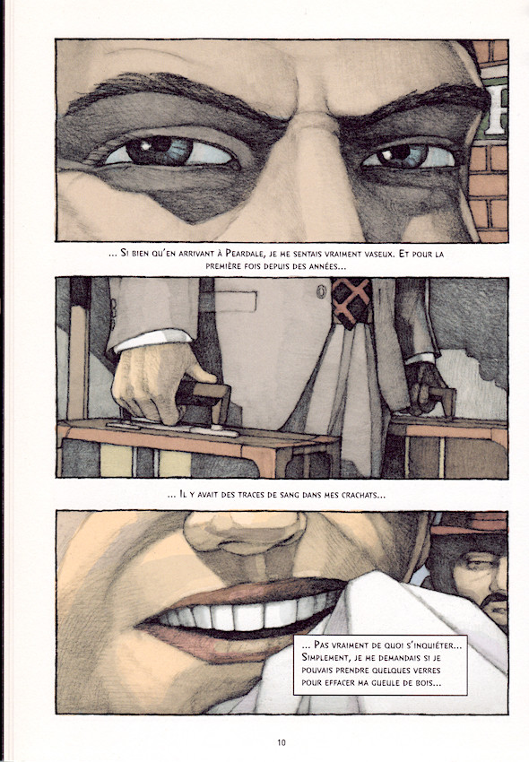 Sauf que, dans cette adaptation, il n'est pas si évident de suivre ce personnage pourtant intrigant. La faute en revient à un découpage qui manque singulièrement de fluidité, une voie-off omniprésente qui n'a pas les accents littéraires à même de soutenir un rythme convenable et un dessin qui, bien que formellement irréprochable, ne parvient pas à restituer une ambiance adéquate. Par conséquent, l'intrigue, loin d'être palpitante, lasse bien avant son terme. Le manque de soin apporté aux divers personnages, leur faible implication dans le récit et le peu de répondant dont ils font preuve finissent par rendre ce one-shot bancal malgré la présence aux commandes de deux auteurs qui connaissent leur métier, l'illustration pour l'un et la narration pour l'autre.