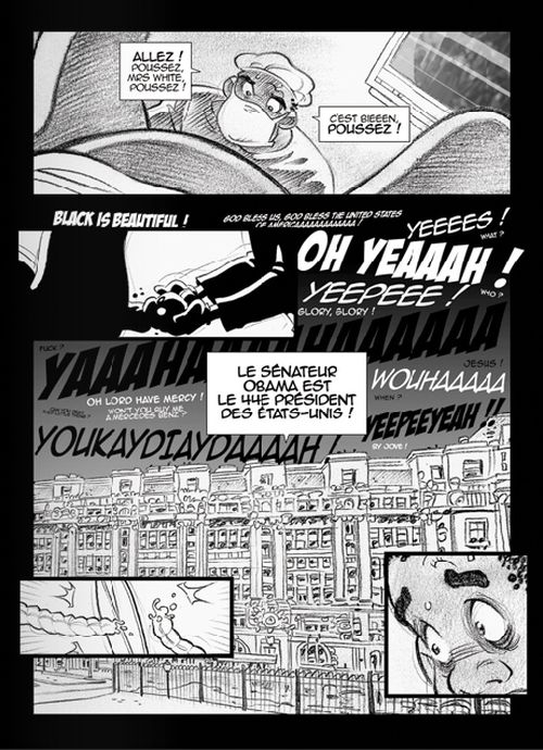 Cette bd est sortie en décembre 2008 soit peu de temps après l'élection américaine, j'avais vraiment envie de lire celle-ci. Je m'intéresse beaucoup au sujet. J'avais pu en effet mesurer l'attente du peuple américain l'année dernière lors de mon voyage aux States. C'était intéressant de découvrir un pays en pleine campagne électorale. J'ai assisté en direct au déclic de ce qui allait conduire à la victoire de cet homme qu'on dit exceptionnel. Il l'est certainement pour être arrivé au sommet de la première puissance mondiale en étant le premier président noir américain. Maintenant, il s'agit de ne pas décevoir. C'est pas une histoire de couleur de peau. La tâche sera ardue avec la crise économique actuelle. J'ai été très surpris par la taille lilliputienne de cet ouvrage. Quelquefois, cela fait très photo-montage. Cependant, c'est bien agréable à lire. Cela se présente également comme un comics. J'ai appris récemment qu'Obama les aimait bien. Il y a beaucoup de choses qu'on apprend notamment sur le programme. L'auteur aurait pu insister sur le duel avec son rival Mac Cain qui est à peine évoqué. Il y aurait également beaucoup de chose à dire sur Miss Alaska. Je regrette également qu'il y ait de grandes impasses sur le parcours politique avant qu'il ne soit sénateur. Le duel avec Hillary est également un peu évacué. On nous promet un second tome à un an d'intervalle pour voir ce qu'il a déjà réalisé. Oui, c'est effectivement une bonne idée. Cependant, il n'y aura pas de suite.BDGest 2014 - Tous droits réservés