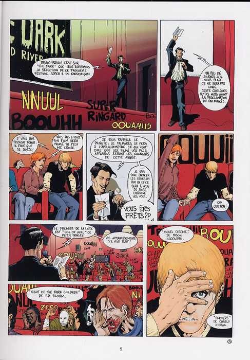 À tel point qu'on a l'impression que Gaudin a accumulé toutes les scènes qui l'avaient fait frissonner à l'écran, et les a couchées sur le papier. Tout cela donne un résultat qui peut paraître débonnaire, mais qui en réalité réussit à créer un climat d'angoisse réelle, au moins aussi impressionnant qu'au cinéma. Le fait que l'histoire se déroule dans le milieu même du genre traité, est pour beaucoup dans la réussite de l'intrigue.