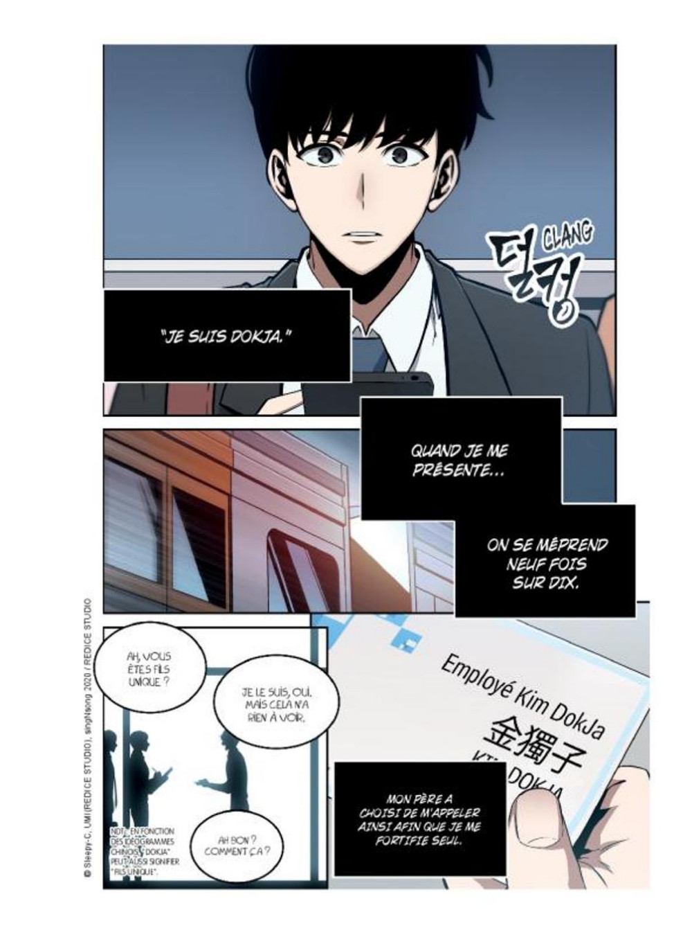 Résumé: Kim Dokja est un employé banal menant une vie ordinaire. Le meilleur moment de sa journée ? Lorsqu'il lit son webroman préféré, dont il est le seul et unique lecteur. Mais alors qu'il en découvre l'ultime chapitre, l'apocalypse s'abat sur le monde... dans des circonstances étrangement similaires à celles décrites dans son roman ! De monstrueuses créatures apparaissent soudainement, obligeant les humains à suivre des scénarios dignes d'un jeu vidéo au péril de leur vie...